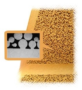 Ten rodzaj powłoki składa się z kulek ze stopu kobalt–chrom–molibden (CoCrMo) o średnicy około 300 µm. Warstwa tych kulek jest spiekana z powierzchniami mocującymi implant. Następnie na pierwszą warstwę spiekana jest druga warstwa, po czym nanoszona jest trzecia i ostatnia warstwa.