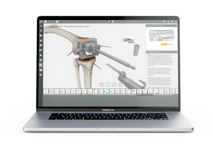 Narzędzie umożliwia udział w poszczególnych etapach zabiegu z każdej perspektywy. Oprócz technik chirurgicznych dostępnych już w konwencjonalnej formie, montaż i demontaż instrumentów są przedstawione w sposób czytelny, z dbałością o najmniejsze detale. Wszystkie ustawienia i pozycjonowanie instrumentów są prezentowane krok po kroku w formacie 3D. Odkryj różnorodność ustawień i opcji umożliwiających personalizację (Twoich) technik chirurgicznych.