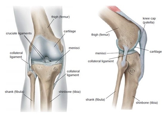 Staw kolanowy łączy dolny koniec kości udowej (femur) z górnym końcem kości piszczelowej (tibia) i umożliwia zginanie oraz prostowanie nogi. W zdrowym kolanie powierzchnie tych dwóch kości (czyli miejsca, w których stykają się i tworzą staw) pokryte są warstwą chrząstki, która pozwala na płynny i bezbolesny poślizg. Łąkotki są półksiężycowatymi strukturami chrzęstnymi, które są trwale połączone z górną powierzchnią kości piszczelowej, ale mogą się nieznacznie przemieszczać, umożliwiając niewielką rotację i ruchy ślizgowe w kolanie. Dodatkowo amortyzują zarówno stopniowo narastające, jak i nagłe obciążenia. Tylna powierzchnia rzepki (patella) również pokryta jest chrząstką i przesuwa się w bruździe na przedniej części kości udowej. Staw otoczony jest miękką strukturą zwaną torebką stawową, która uszczelnia staw i wytwarza płyn stawowy odżywiający chrząstkę, smarujący powierzchnie stawowe oraz umożliwiający płynny ruch. Staw kolanowy stabilizowany jest przez liczne więzadła i ścięgna (zarówno przebiegające przez staw, jak i wzdłuż niego). Dodatkową ochronę stabilizującą zapewnia również rzepka.