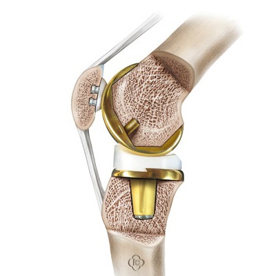 Ponieważ zużytej lub uszkodzonej chrząstki nie można odbudować, zmieniony chorobowo staw kolanowy jest często zastępowany sztucznymi komponentami. Podczas operacji powierzchnie, które normalnie pokryte są chrząstką, zostają całkowicie zastąpione komponentem udowym na kości udowej oraz komponentem piszczelowym na kości piszczelowej. W zależności od jakości kości, masy ciała i poziomu aktywności fizycznej pacjenta komponenty są mocowane do kości z użyciem cementu lub bezcementowo. Pomiędzy komponentem piszczelowym a udowym umieszczany jest element ślizgowy wykonany z polietylenu. W celu zwiększenia trwałości implantów stosuje się specjalne stopy metali, które w niektórych systemach pokrywane są powłoką ceramiczną. Powłoka ta umożliwia również leczenie pacjentów z nadwrażliwością na niektóre metale.