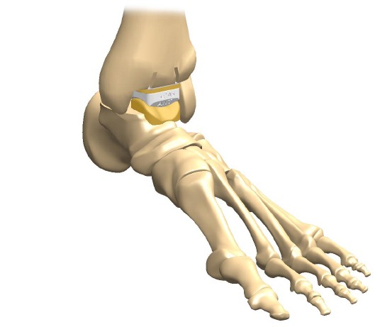 Staw skokowy zbudowany jest z dolnej części kości piszczelowej (tibia) oraz górnej powierzchni jednej z kości stopy – kości skokowej (talus). Kość strzałkowa (fibula), która biegnie po zewnętrznej stronie kości piszczelowej, również stanowi część stawu i wraz z torebką stawową, więzadłami oraz mięśniami otaczającymi staw zapewnia jego stabilność. W zdrowym stawie skokowym trzy wymienione kości (kość piszczelowa, skokowa i strzałkowa) są w miejscach styku pokryte gładką chrząstką, która umożliwia płynny ruch. Torebka stawowa uszczelnia staw i wytwarza płyn, który odżywia chrząstkę, smaruje powierzchnie stawowe oraz umożliwia płynny, bezbolesny ruch. Choroba zwyrodnieniowa stawu, procesy reumatoidalne oraz urazy mogą prowadzić do uszkodzenia i zużycia chrząstki. Zużycie to ma charakter postępujący, przez co staw staje się coraz bardziej bolesny. Obciążanie kończyny powoduje nasilanie się bólu, a możliwy do pokonania dystans stopniowo się zmniejsza. Z czasem nawet odpoczynek przestaje przynosić wyraźną ulgę.